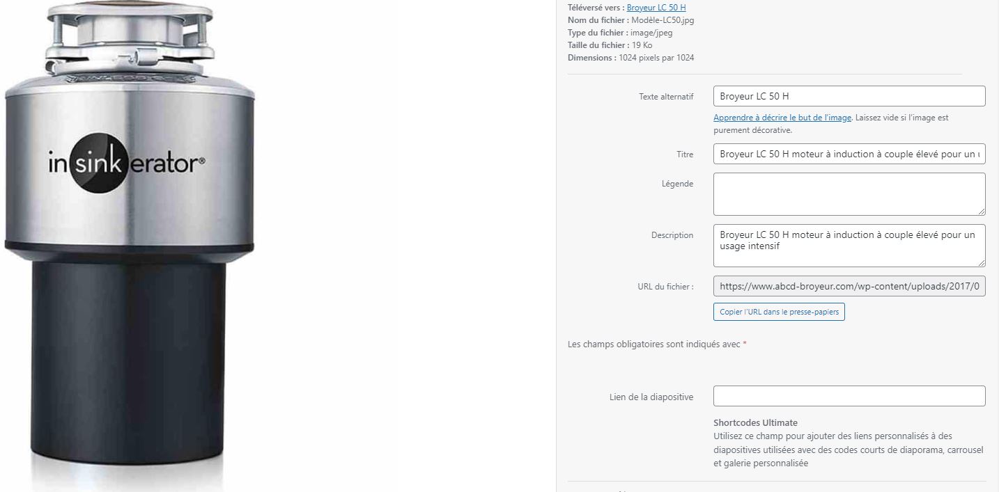 La description a un véritable impact dans les pages dédiées aux illustrations, qui se révèlent être un excellent levier SEO. C’est ce qu’on appelle les pages attachment.php. Attention cependant, ceci est surtout valable pour les sites dont le contenu illustratif est primordial. Par exemple un portfolio ou un site dédié à l’art ou à la photographie. Lorsque l’on ajoute une image dans un article, on peut en effet choisir l’URL de destination lors du clic sur la miniature.